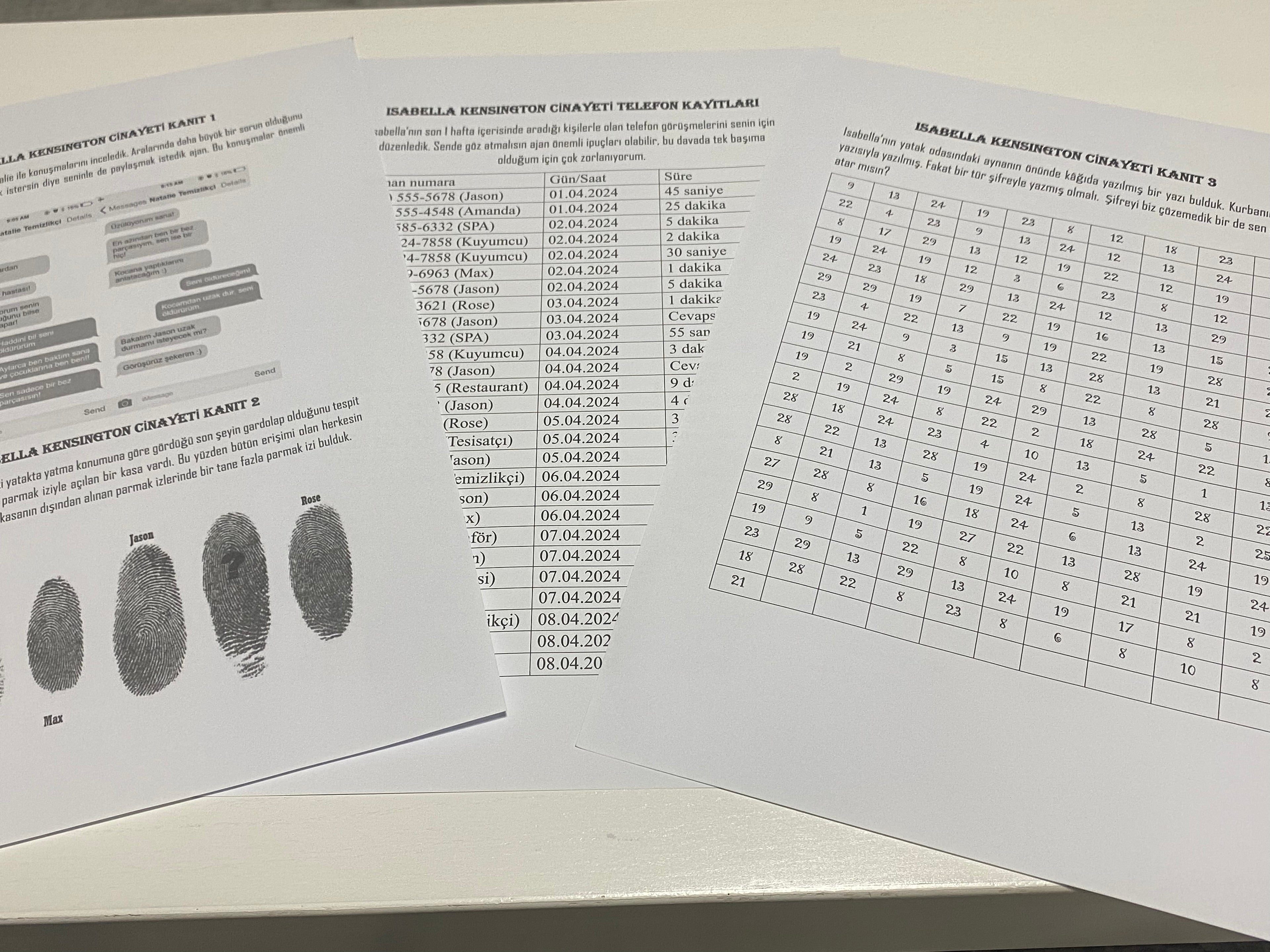 🔎 Masadaki Dosyayı Açın – İfadeler, adli raporlar, gizli ipuçları ve şifrelerle birlikte suçluyu ortaya çıkarın