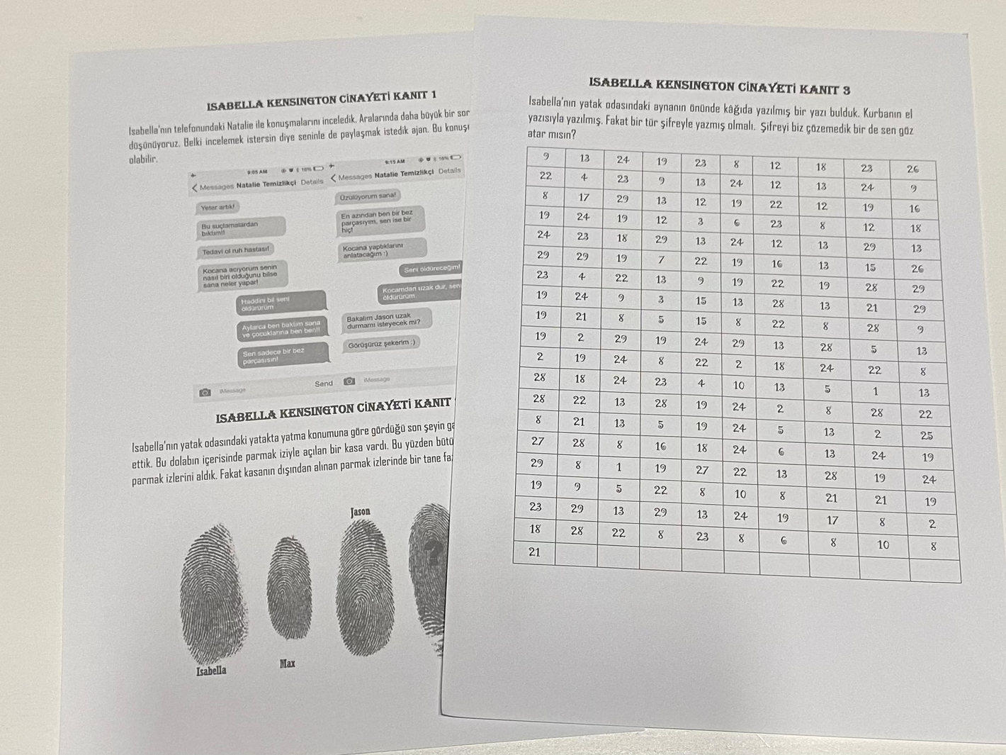 Oyun içerisindeki ipuçlarını veya kanıtlardaki şifreleri çözemezsen İpucu Zarfına bakarak yardım al.