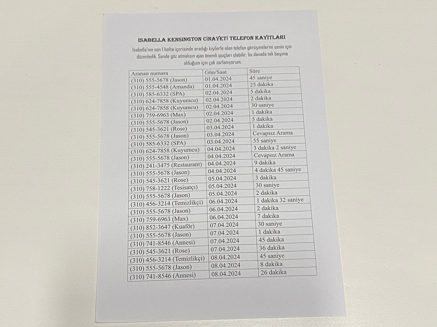 Giriş kısmını, olay özetini, ifade tutanaklarını ve ajan konuşmalarını dikkatlice oku.